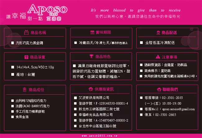 施比受更為有福,更深層的理念是【分享】,艾波索希望 當您品嘗過我們的甜點後,會願意和家人、朋友一起分享,幸福便在此刻傳遞。
